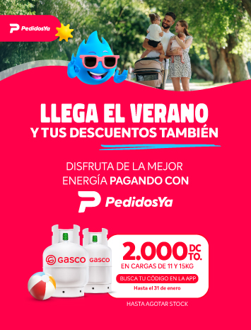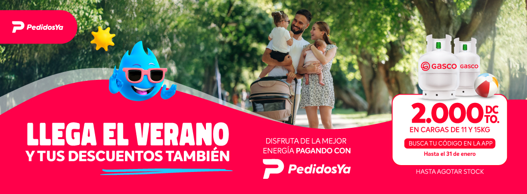 en distribuidores adheridos a App PedidosYa; $2.000 de descuento para todas las compras en formatos de 11 o 15 kilos. Busca tu código en la App de PedidosYA. Máximo 1 cupón por usuario. No acumulable con otras promociones ni descuentos.